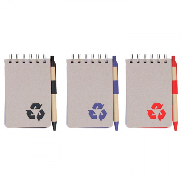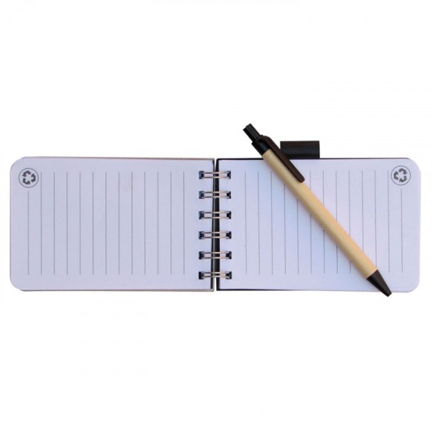 Artículo: Libreta ecológica tipo block con 50 hojas de papel reciclado, impreso a 1 tinta y con porta pluma.