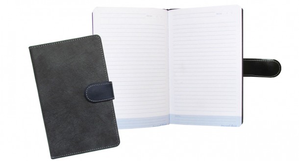 Artículo: Libreta Journal Book con cinturón e imán, encuadernada, con hojas rayadas.