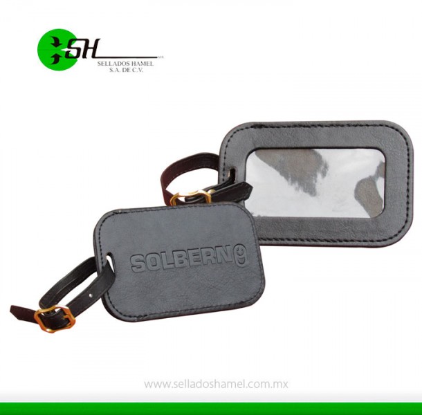 Artículo: Identificador de maleta en curpiel cosido con ventana de cristal.