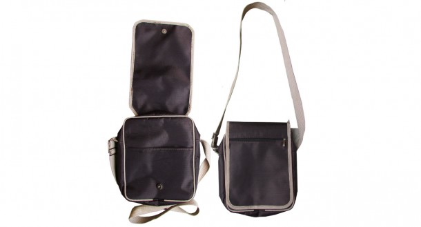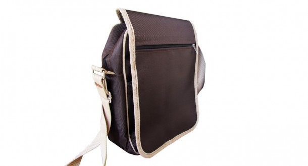 Artículo: Portafolio ejecutivo de poliéster con cierre, asa ajustable, tarjeteros y broche con imán.