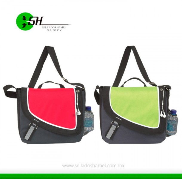 Artículo: Portafolios para viaje con cierre de velcro, malla porta botella y correa ajustable.